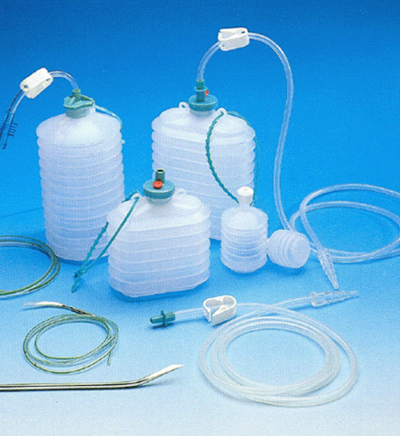 High vacuum suction system. Standard set includes one collection bottle with capacity 450 ml, with single or double connection tube, provided with universal connector